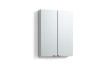 Medicinskåp i plåt. Elektrostatisk pulverlackering, vitt. Låsbart. Självhäftande grått kors att klistra på dörren medföljer.