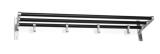 Konsol av förkromade 16x1,25 mm rör. Hyllplan i nät av 2,25 mm tråd i ram av 16 mm stålrör, pulverlackerat i vitt. Galgrör av 19 mm stenylrör, vit. Ankarkrok i vit nylon, 4 stycken/meter. Kan beställas i andra längder samt i svart färg. Levereras monterad. Förpackas 2 st i varje kartong (4 st i 400 mm). Kan fås enstycksförpackad mot tillägg.