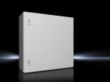 Kapsling, kantbockad och helsvetsad. Med fyra gängade hål (pressmuttrar) i skåpets bakstycke, vilket möjliggör montage av väggfästen från utsidan. Fästhålen är utpressade 1,5mm för fritt luftflöde bakom skåpet.