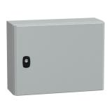 Kapsling, kantbockad och helsvetsad. Med fyra gängade hål (pressmuttrar) i skåpets bakstycke, vilket möjliggör montage av väggfästen från utsidan. Fästhålen är utpressade 1,5mm för fritt luftflöde bakom skåpet.