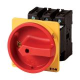 Huvudströmbrytare, produktsortiment: huvudströmbrytare, underhållsbrytare, reparationsbrytare. Delgruppsreferens: P3, Stopp funktion: STOP funktion, med svart vridhandtag och låsring, information om utrustning som medföljer: hjälpkontakt eller nolledare monterad av användaren, 3 poler. Låsningsanläggning: låsbar i 0 (av) läge. Skyddsklass: Front IP65.