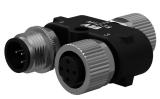 Givarbox, användning: Standard, anslutning: M12-SPEEDCON-hona Metall, poltal: 4, kodning: A - standard, kontaktanslutning: enkelt, statusindikering: Ja, pnp; stamkabelanslutning: Fast anslutning 180°, PUR/PVC, skärm: nej