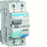 Perskonskyddsautomat typ A, Karakteristik C med skruvanslutning. En personskyddsautomat är ett jordfelsskydd med inbyggt överströmsskydd som finns i en minibrytare, vilket sparar plats och ger användaren en lättare överskådlighet. Personskyddsautomaten är enligt standard EN 61009-1. Matande ledare kan anslutas från över- eller undersida. Om utbyte av en komponent på DIN-skenan blir nödvändig är detta möjligt att utföra utan att andra än den aktuella produkten berörs. Den platsbesparande (2 moduler) personskyddsautomaten används med fördel till person- och kortslutningsskydd av 1-fas uttagsgrupper. Fasskeneanslutningen ger möjlighet att ansluta fler personskyddsautomater på samma DIN-skena.
