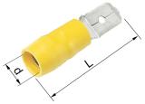 Rundstift av mässing. Isolation av PA, PVC eller PC. PC med "easy-entry".
