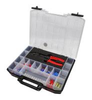 11 st fack med 350 isolerade förbindningselement 0,5-6 mm² och 2 kopplingslister samt pressverktyg T50.