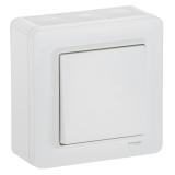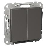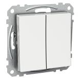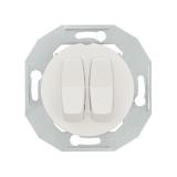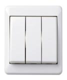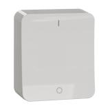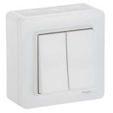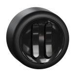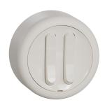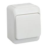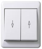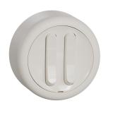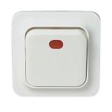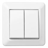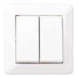 Strömställare för utanpåliggande IP44 montage med två membrannipplar. Skruvanslutning. Två neutrala överkopplingsklämmor i kron och trapp.
