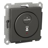 Timer med inbyggd lysdiodindikering. Med ram, centrumplatta och trycke av halogenfri termoplast. Fästskruvavstånd, 60 mm. Avsedd även för kombinationsmontage. Vid utanpåliggande montage användes förhöjningsramar. Timern inställes mellan 15min–8 tim vid installation. Nolledare måste anslutas för funktion. Automatsäkring. Montagedjup 32mm. Både fas- och nolledare måste anslutas.