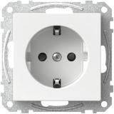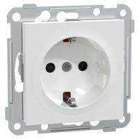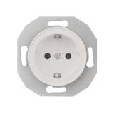 Vägguttagets petskydd och jord sitter integrerat i insatsen vilket gör uttaget beröringsskyddat och jordat även utan centrumplattan och ramen monterad. 16 A, 250 V.