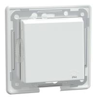 Kombinationsbara 1-vägs vägguttagsinsatser (infällda uttag), 16A. Uttagen med klafflock kan uppgraderas till IP44 med tätningssats eller utanpåliggande dosa IP44. Kompletteras med valfri Exxact ram.