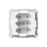 Vägguttag, ELKO, One, infälld, 3-vägs, euro, 16A/2,5A, 250V, IP21, skruvanslutning.