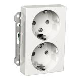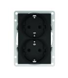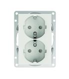 Tvåvägs vägguttag för Plus Option ramar. Dubbla anslutningar per fas. Skruvanslutning. Säkerhetsuttag. Levereras utan ram. Montagedjup 31 mm. Kräver 1 1/2-dosa.