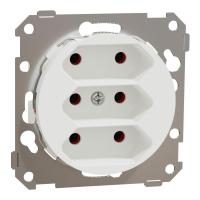2-vägsuttag komplett 16A jordat uttag och x-plint med petskyddat uttag med snabbanslutningar i platt design. Serie S.1. För montering i 1 1/2-vägs väggdosa anslutningsplintar enligt IEC 60884-1