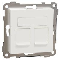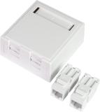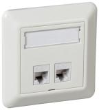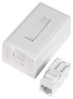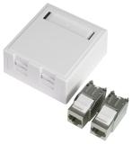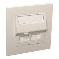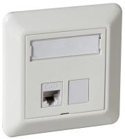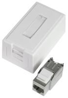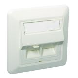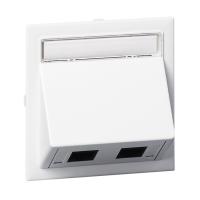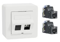 ELKO RS, Plus, infällt, Fjällvit (RAL 9010), vinklat datauttag. Levereras med 2st tool less Kat 6A STP RJ45 keystone-jack och 1st vit blindplugg. Jacken är lätta att kontaktera och kräver inga specialverktyg. Jacken snäpps fast direkt i insatsen och modularjacken är testade enligt gällande komponentstandard. Uttaget har en vridbar roterande märkningsskylt med 2 sidor. För infälld installation i standarddosor med cc 60 mm fästskruvavstånd. Avsedda även för kombinationsmontage. Monteras i lämplig RS eller PLUS 1 till 5-facks täckram för cc 60mm dosa eller 1 till 3-fack hög utanpåliggande dosa för utanpåliggande montering, samt i hörnbox. Dimensioner är (B) 74,2mm x (H) 74,2mm x (D) 46,1mm. Färgen är Fjällvit (RAL 9010) med blank yta och tillverkad i termoplast