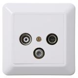 Antennuttag, GS MM 8dB, RS. Komplett Radio/TV- och multimediauttag med galvaniskt avskilda uttag där portarna är avskilda från varandra vilket ger en utökad säkerhet för personer och anslutna apparater. Uttagen används vid nyinstallationer i enlighet med en överenskommelse mellan Elsäkerhetsverket och kabel-TV operatörer. Uttaget är ett slututtag på 8dB. Centrumplatta och ram av halogenfri termoplast.