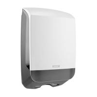 Dispenserlösning för torkpapper. Kompakt lösning för mindre utrymmen. Perfekt för avtorkning och rengöring av ytor. Enkel avrivning, räcker med endast en hand. Återvunnen plast i dispensern. Transparant bakstycke - för enklare montering. Lätt att kontrollera pappersnivån, tack vare transparanta sidopaneler. Material, ABS (Acrylonitrile butadiene styrene), PC (Polycarbonate), POM (Polyoxymethylene).