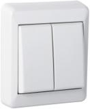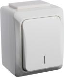 Den utanpåliggande strömbrytaren har samma insats, och samma blanka vita färg som den infällda Exxact-serien.