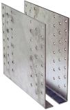Används för ingjutning i betong som infästning av stolpar. T ex staket, pergola, carport och altaner. Material: 4,0 och 5,0 mm stål, varmgalvaniserat efter svetsning. Övrigt: Spikhål Ø 5 mm. Bulthål Ø 13,5 mm. Armeringsjärnets längd är 200 mm (4 mm) resp. 250 mm (5 mm).