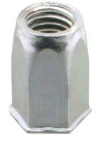 POP-nut med plant huvud i aluminium AlMg2,5 obehandlad. POP-nut är en enkel och idealisk lösning för att få starka gängor i tunna plåtar. Blindnitmuttern har minst sex fulla gängvarv vilket ger infästningen med höghållfasthet. Blindmonteras från en sida och sitter permanent fastnitad.