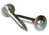 Vass spets och gängor anpassade för förankring i trä. Gängorna griper omedelbart och drar in skruven i trallen, samtidigt som rillorna under huvudet försänker skruven.