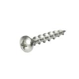 Vass spets med dubbelledande trä- och stålgängor (Hi-low) som griper omedelbart, penetrerar mycket snabbt i trä- och stålregeln, samtidigt som rillorna under huvudet försänker skruven. Lämplig vid montage av cementbaserade skivor på träreglar alt. stålreglar godstjocklek 1,0 mm. Phillips kryssspår nr 2. Huvud Ø 7 mm. Monteringsanv: Skruvdragare med djupanslag, varvtal 2.000–3.000 r/m rekommenderas. Dimensionering Ca 15 st/m2, skruvavstånd 20 cm på skivkant och 30 cm på inre delen.