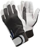 Ofodrad syntetläderhandske, Ofodrad, 0,7 mm, Syntetläder, Polyester, Cat. II, Grå, svart, blå, Kromfri, Resår 360°, för allroundarbeten.