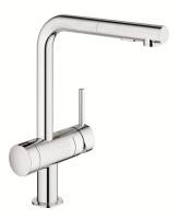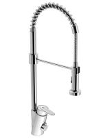 Köksblandare med mjukstängning, svängbar pip med 2-stråligt munstycke (normal och sköljstråle) och energi- och vattenbesparande strålsamlare. Både spak och elektronisk sensor för start.