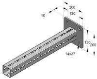 Väggkonsol med sträva 200x200mm. Maxbelastning 5 KN. Används exempelvis vid montage av rördragning längs vägg