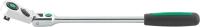 QuickRelese fintandat ledat spärrskaft. Omställbar. 80 kuggar. Handtaget kan höjas och sänkas med ca 90°, låsning i positionerna: - rakt, -30° uppåt, -60° uppåt, -30° nedåt. Spärren lossas med en tryckknapp på handtaget. Förhindrar FOD-skador tack vare skruvlöst utförande. DIN 3122/ISO 3315.