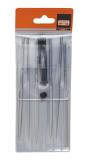 Sats med 12 st nålfilar och ett filskaft i plastficka med upphängningshål. Filar för polering och fina ytor. Innehåller en av varje; ansats, flat, trekant, fyrkant, halvrund, fågeltunga, rund, knivfil, barrette, slitsfil, oval och spår. Alla i gradgrovlek 2, fin.