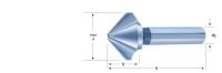 3-skärig försänkare. Koboltlegerat pulversnabbstål ger försänkaren ökad slitstyrka. Försänkningsvinkel 90°. För försänkning och gradning i mycket hårt stål, rostfritt och termoplaster. DIN 335C.