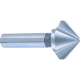 3-skäriga försänkare med cylindriskt fäste, med tre längdslipade plan för bättre fastspänning i borrchuck, samt tunga för klämhylsa.