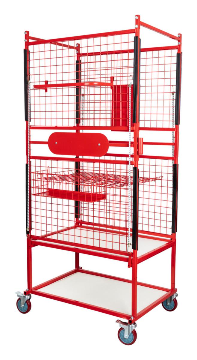 Med detta mobila förvaringssystem sorterar du dina demonterade bildelar på ett smart sätt. Vagnen är utrustad med hållare och stroppar för upphängning av stötdämpare och avgasrör, 2 st hyllor, 1 st stor och 1 st liten delkorg samt skylthållare för uppmärkning av vagn och avtagbar tavla för noteringar.