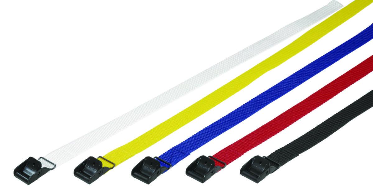 Med klafflås. Surrningsstyrka 400 kg. Bandbredd 25 mm.