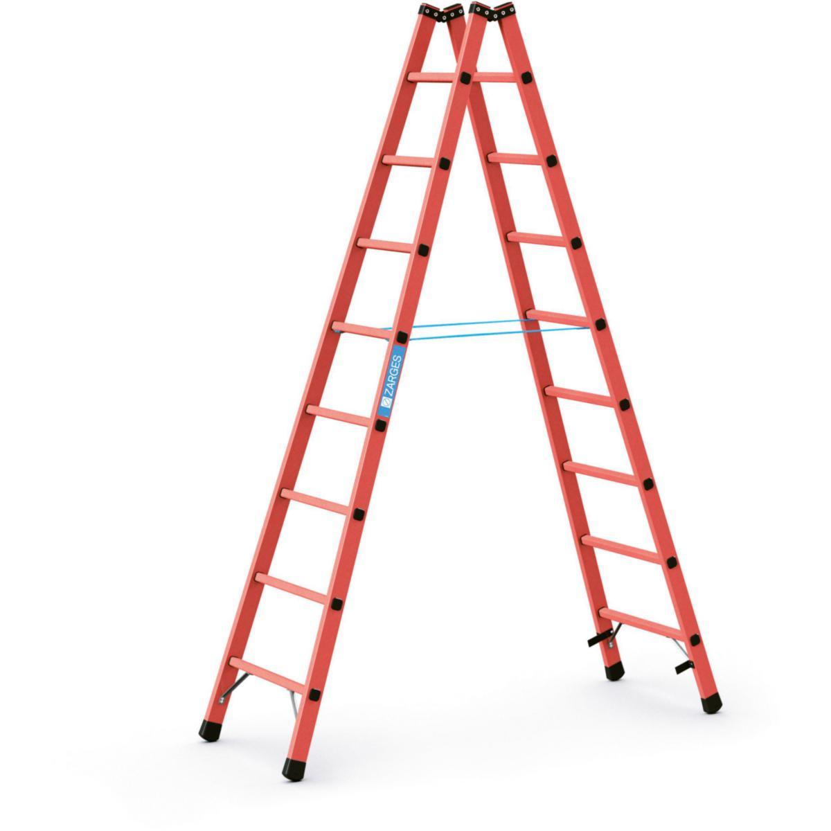 För flexibel användning i elektrisk eller kemisk miljö samt för spänningsförande arbeten. Stegsida och stegpinnar (30 mm × 30 mm) av glasfiberförstärkt plast för hög kemisk hållbarhet. Glasfiberstege som motsvarar DIN 53 387 och 53 453 (motsvarar en livslängd på 10 år). Godkänd som åtkomststege i överensstämmelse med DIN IEC 78/221 A/CD kategori 1/30 KV. Godkänd för arbeten med elektrisk spänning (1000 V AC, 1500 V DC). Stegsidessäkring genom stabila perlonremmar. Utbytbara glidskydd av plast garanterar ökad stabilitet och samtidigt fast placering på stegsidorna.