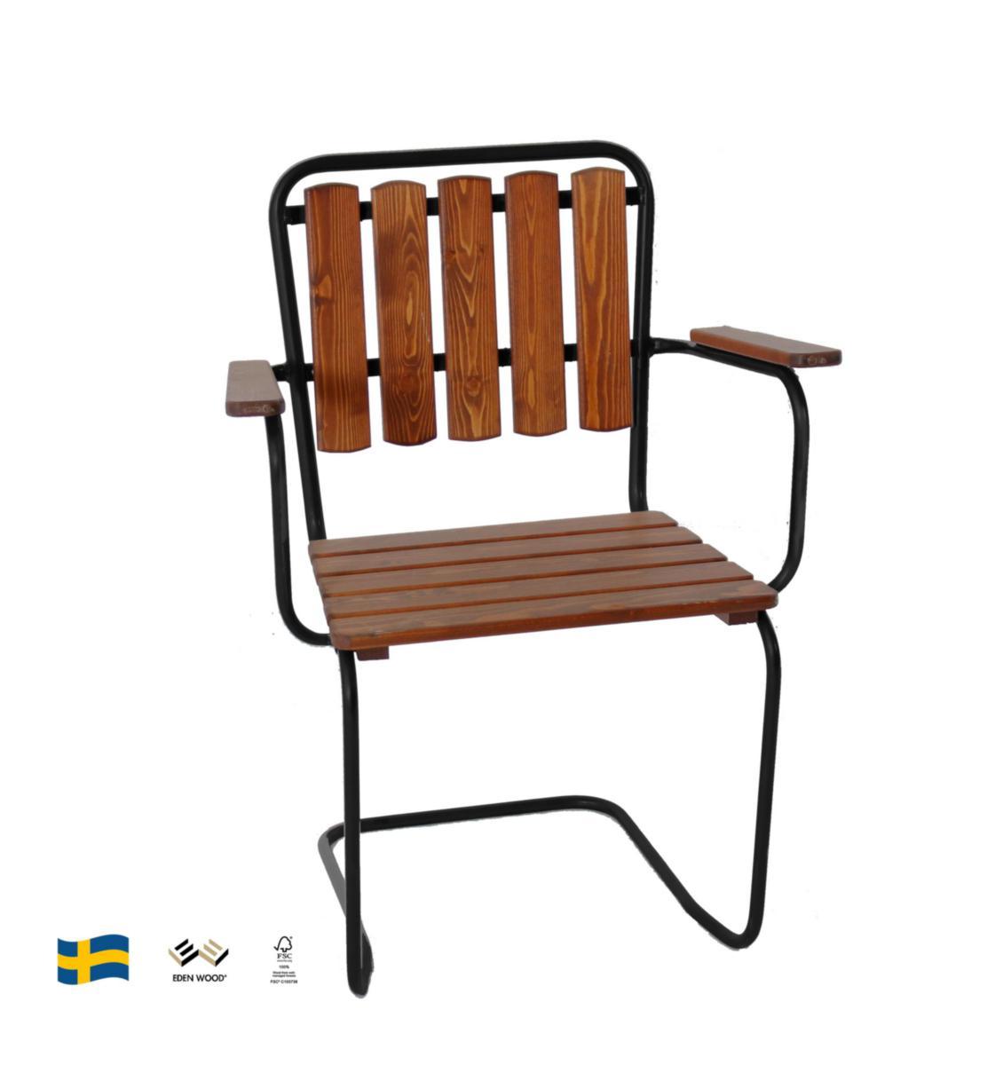 En populär klassikerserie som har tillverkats i mer än 40 år. Hemligheten bakom stolarnas karakteristiska gung sitter i stativet som tillverkas i fjäderstål av högsta kvalitet. Fåtöljerna är staplingsbara. Trädetaljer i svensk Norrlänsk furu, miljöcertifieringar enligt FSC. Bordsstativet är gjorda i svenskt 25 mm rör som antingen är elförzinkat + pulverlackerat. Bordskivorna är består av planhyvlat 25×100 mm virke.