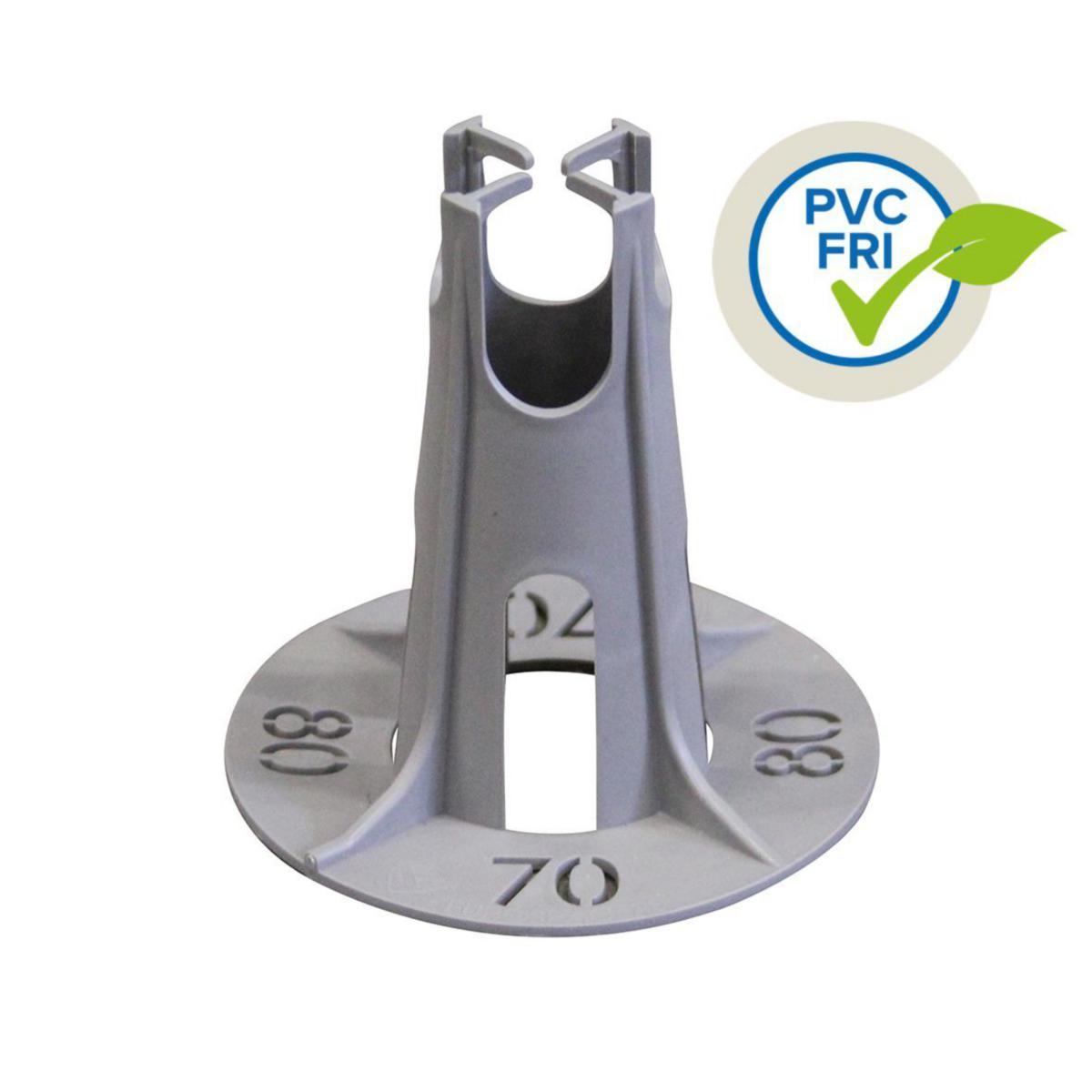 Markdistans avsedd för användning mot mjukt underlag, t.ex. isolering, sand, leca eller markduk. För järn med diameter upp till 16 mm. Täckskikt 15-150 mm. Den starka konstruktionen gör klossen till en mycket stadig och stabil markdistans. Beräknad åtgång 4-6 st per m² beroende på armeringsdimension och underlag. Markdistanskloss upp t.o.m. storlek 90/100 är fria från PVC!