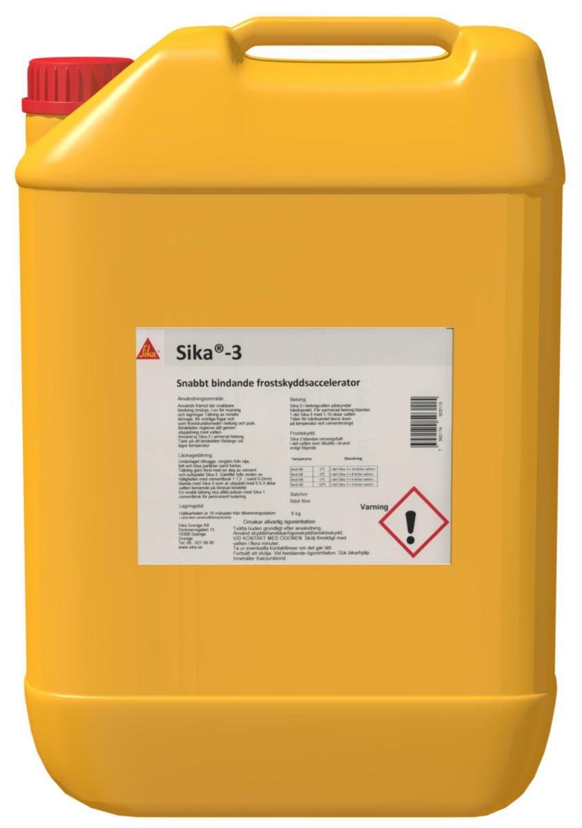 Sika–3: Frostskyddstillsats. Frostskyddsmedel i betong och puts. Skall ej användas i armerad betong pga korrosionsrisk.