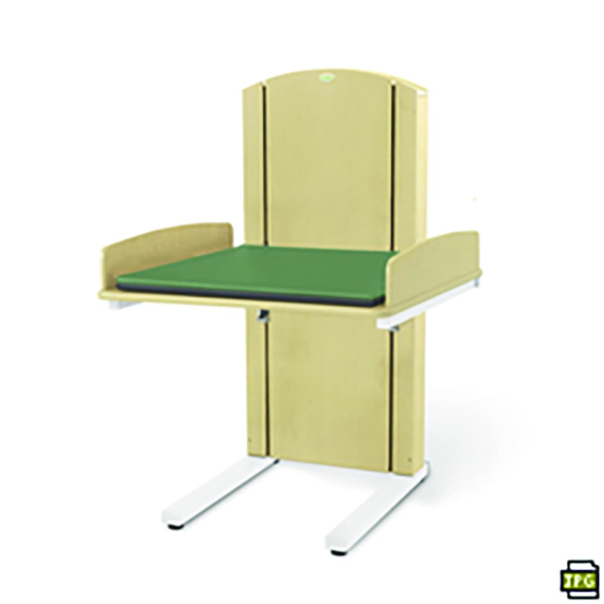 Lyfta 80 Golv är en fristående modell. Skötbordsskivan är 80 cm bred och 80 cm djup med mjukt rundade hörn och kanter. Till Lyfta behövs vare sig stege eller trappa. Med handkontrollen sänker du lätt skötbordet till golvnivå så barnet kan klättra upp på skötbordet utan att behöva lyftas. När det är gjort ställer du snabbt och enkelt in den arbetshöjd du vill ha. När inte skötbordet används kan skivan fällas upp mot väggen för att spara plats. Till alla våra skötbord medföljer höga skötbordskanter och madrass.