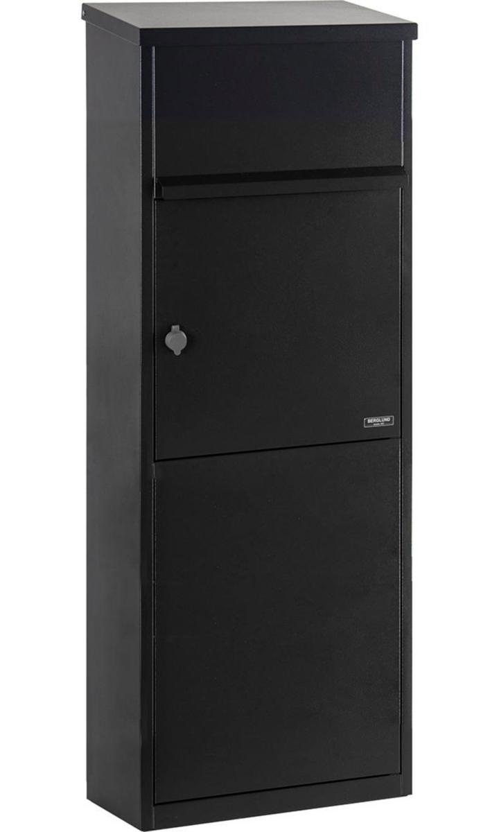 Rymlig paketpostlåda med smidigt inkast i topplocket. Kraftigt cylinderlås med externt väderskydd som försvårar att fukten tränger in. Postlådan har en stabil konstruktion och är utformad för att klara tuffa skandinaviska väderförhållanden. Utrustad med ett kraftigt cylinderlås med externt väderskydd som försvårar för fukten att tränga in.