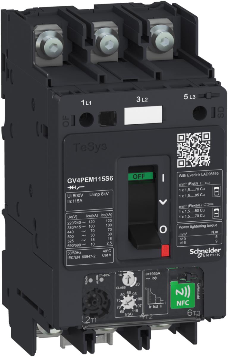 TeSys GV4M, 3 polig motorskyddsbrytare med multiskydd, termiskt skydd 20-50A, magnetiskt skydd 50kA, fasbortfall, obalans, jordfel, lång start och låst rotor