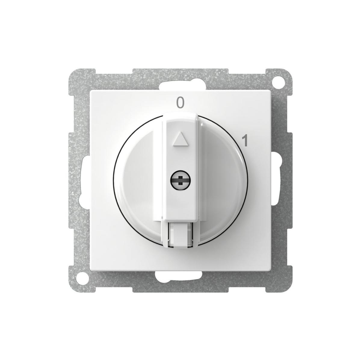Exxact 2-pol Sektionsströmställare 0-1, låsbart vred, skruvanslutning, för infälld montering i apparatdosa c/c 60mm. För utanpåliggande montage används dosa 35mm. Möjlighet att eftermontera en signallampa (IP20). Kompletteras med valfri Exxact-ram. Vit