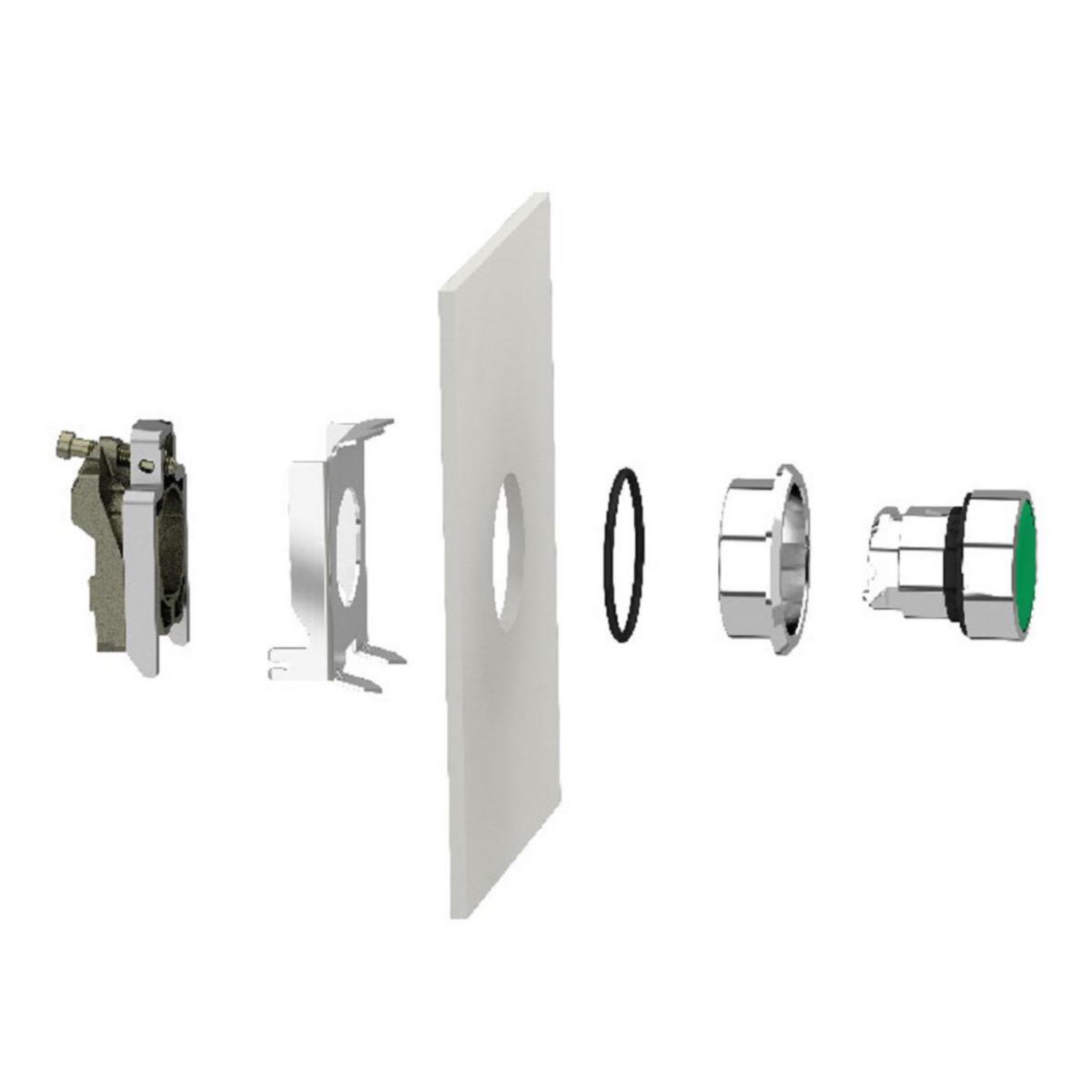 Kit i metall för infällt montage - för Harmony XB4 tryckknapp och signallampa diameter 22mm. Håltagning 30,5mm.