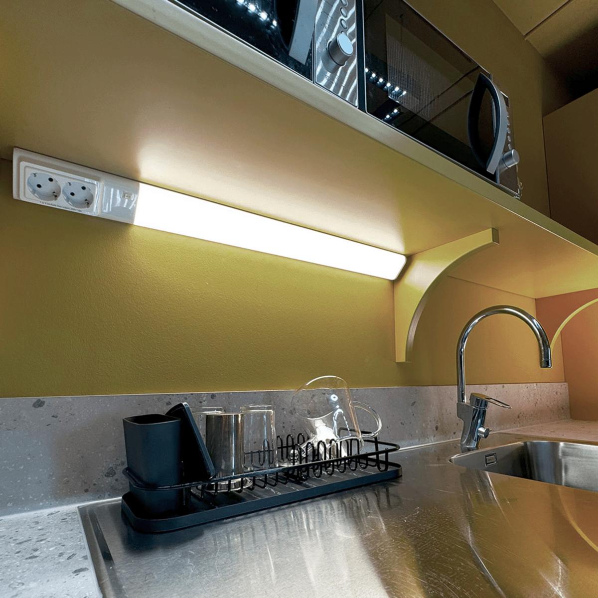 Underskåpsarmaturen Frej är den perfekta lösningen för stilren och funktionell belysning i köket, tvättstugan eller i arbetsutrymmet. Med sina tre olika längder och eleganta vita design smälter den in i alla miljöer.