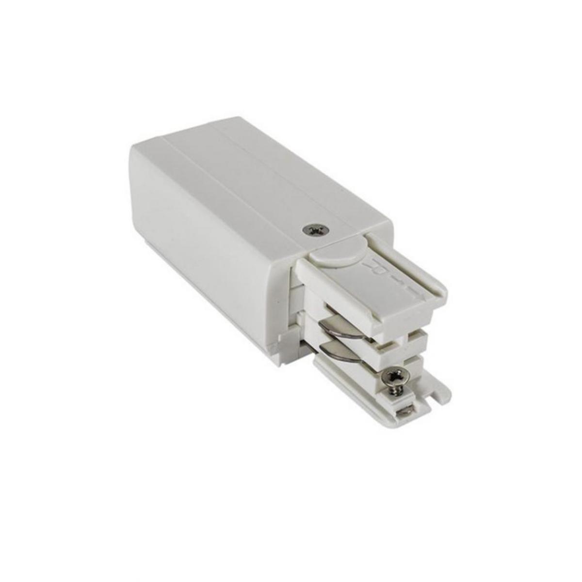 Nätanslutningsdon för anslutning i skenända, höger eller vänster. Alternativt i mitten mellan två skenor.