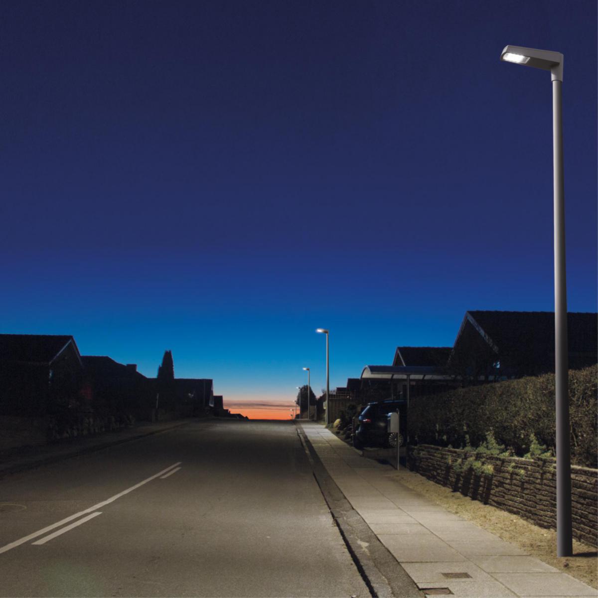 High5 är en stolparmatur för gator, vägar, parkeringar etc. High5 är en optimal lösning för eftermontering av gamla kvicksilver eller natriumlampor. Asymmetrisk ljusfördelning med multi-lins, S (längsgående). Lackad i ljusgrått. Härdat frontglas. Levereras med 6m kabel. Montering på Ø60mm stolptopp. Vindyta 0,038 m², vikt 4,2 kg. Integrerat överspänningsskydd (min. 4kV) inbyggt i drivern.