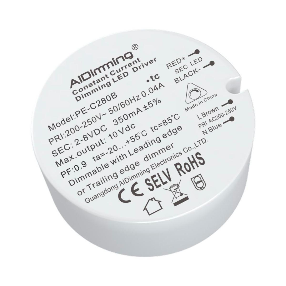 PE-C280B är ett dimbart drivdon för lägre laster med ljuskällor för 350mA (konstantström)
