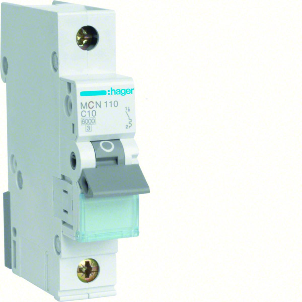 Minibrytare (fd dvärgbrytare) 1-polig med skruvanslutning MCN110 (E-nr:2106217) 10A, C-karakteristik med en brytförmåga på 6kA. Dubbelanslutning för matning, en för fasskena samt en för kablar. Detta ger en säker anslutning. Ger ett pålitligt och tryggt skydd av kablar/ledningar mot överlast och kortslutning. Finns med B- och C-karakteristik samt 1-3 poler/1-3 moduler. MCB (Mini Circuit Breaker) benämns i äldre föreskrifter som dvärgbrytare/automatsäkring. Passar för bostäder och mindre kommersiella fastigheter. Tillbehör som hjälpkontakter, signalkontakter, shuntutlösare och underspänningsutlösare monteras utan verktyg på minibrytare.
