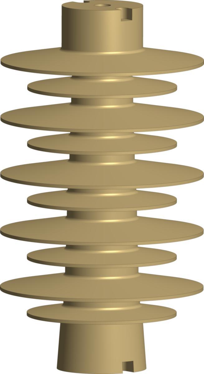 En isolator som passar på gamla 12 och 24kV säkringsapparater. Med M12 gänganslutning och övergångsbricka för M16 hål. 20 kV Hydrofobisk gjuthartsisolator.