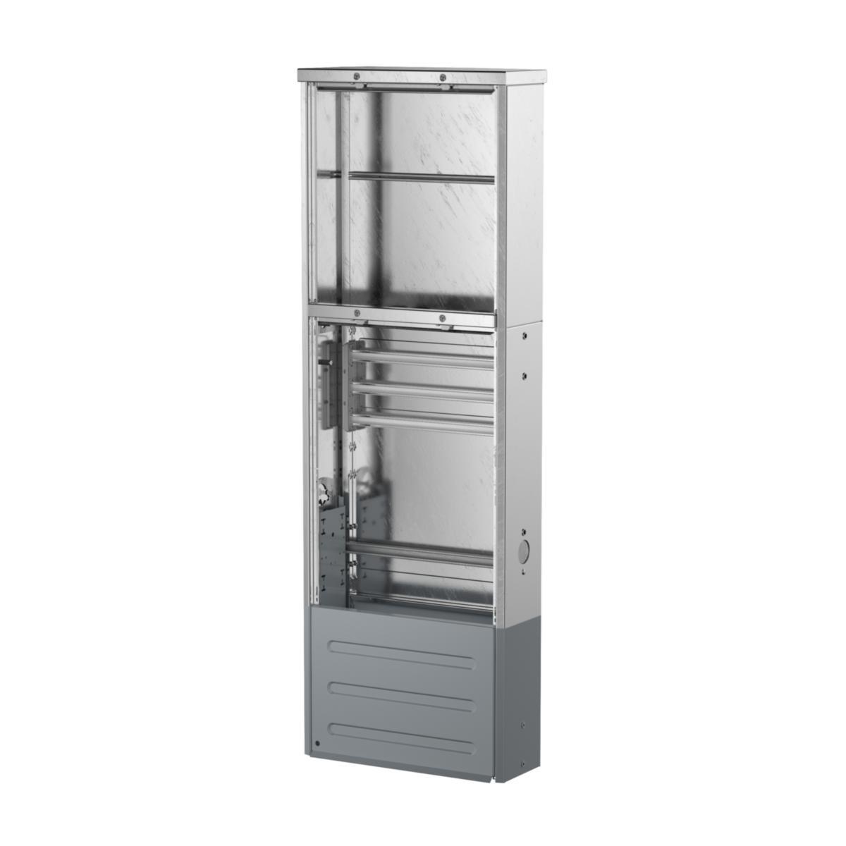 Ovandelen är försedd med fästskena för mätarunderlag typ MPF 25 B, MPF 63 B eller montageplatta MPP 20. Mellan delarna finns öppningar för kabelgenomföring Ø 50 mm. På gavlarna finns fäste för t.ex. markeringsstång eller tillbehörsskåp. Luckan är på insidan försedd med hållare för t.ex. kabelskåpskort. Präglingarna på luckan är anpassade till de vanligaste märksystemen. Testad enligt SS-EN 61439-5 och uppfyller kraven för arktiskt klimat. Skyddsnivå skåp IP34D.