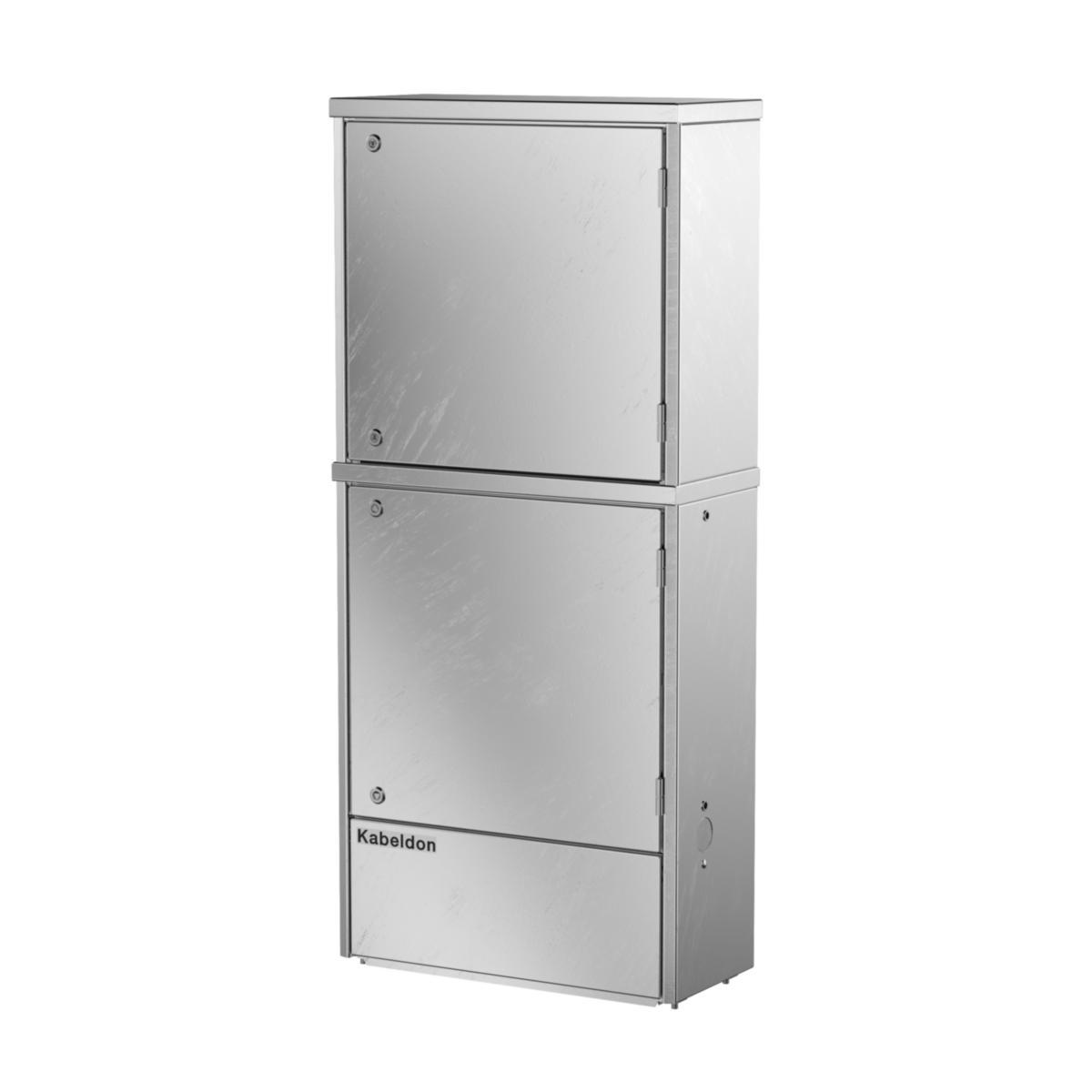 Ovandelen är kan användas som utrymme för kWh-mätare eller förses med montageplatta för olika ändamål. Mellan delarna finns öppningar för kabelgenomföring Ø 50 mm. Gavlarna är försedda med fäste för t.ex. markeringsstång eller tillbehörsskåp. Kapslingens djup på 312 mm möjliggör montage av samtliga elkopplare med oberoende handmanöver. Testad enligt SS-EN 61439-5 och uppfyller kraven för arktiskt klimat. Fundament ingår ej.